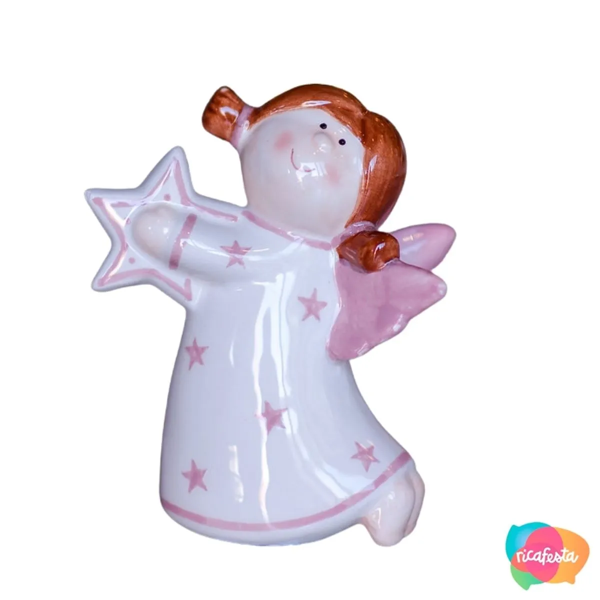 ANJO COM ESTRELA DE CERAMICA 10 CM ROSA CLARO