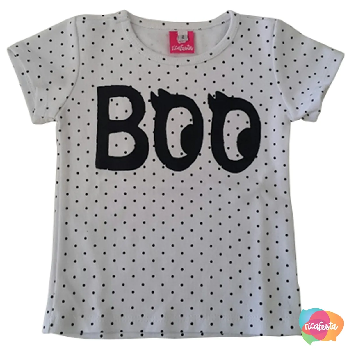 Camiseta Halloween Boo Tam 12 anos Branco poá