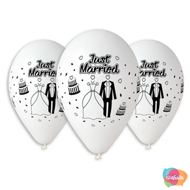 Balão de Látex 13” (33 cm) – Just Married | Pacote com 6 Unidades