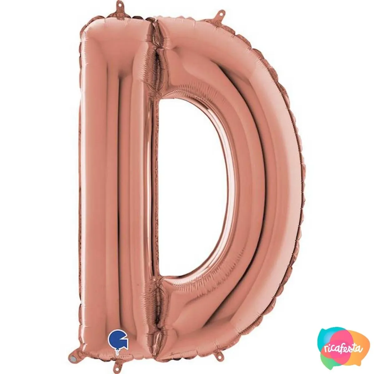 BALÃO METALIZADO 40 POLEGADAS LETRA D ROSE GOLD