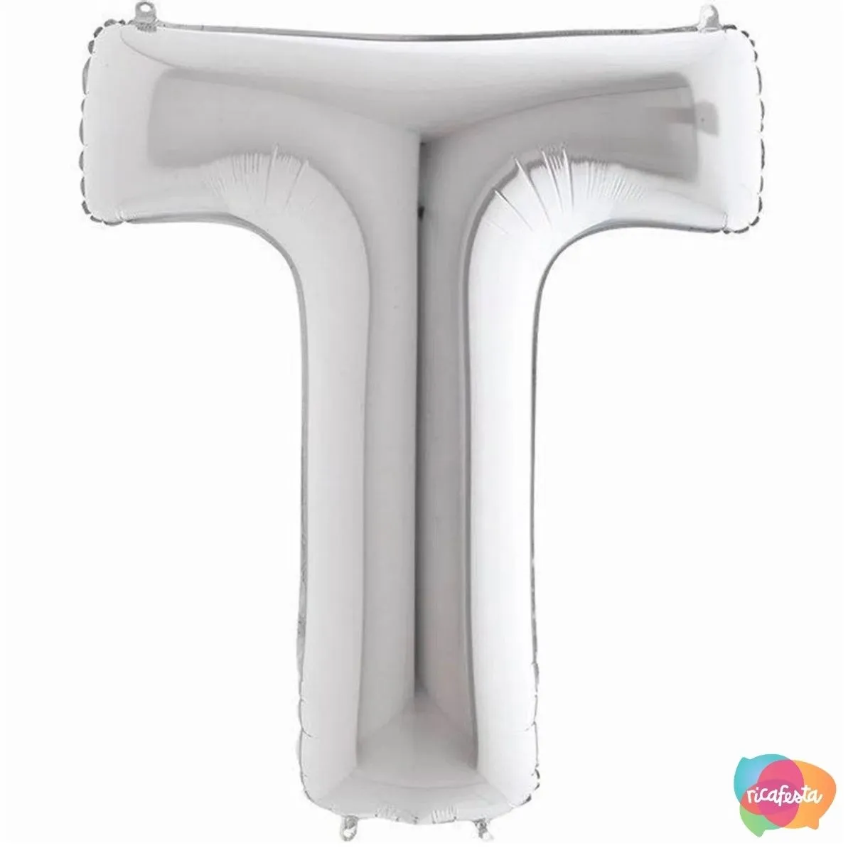 BALÃO METALIZADO 40 POLEGADAS LETRA T PRATA / CINZA