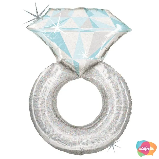 BALÃO METALIZADO ANEL BRILHANTE HOLOGRÁFICA 38 POLEGADAS PRATA / CINZA
