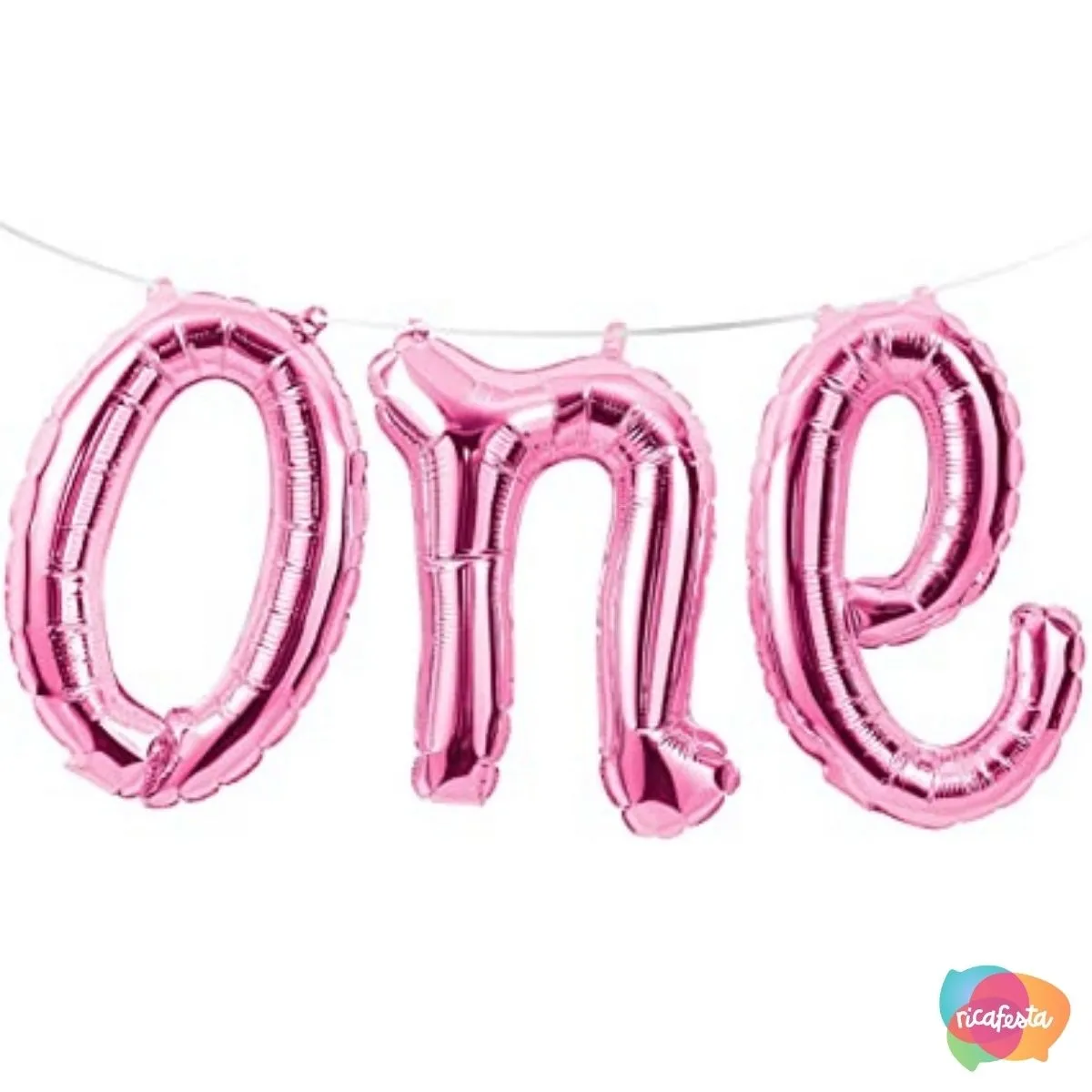 BALÃO METALIZADO SCRIPT ONE PINK 12 POLEGADAS ROSA