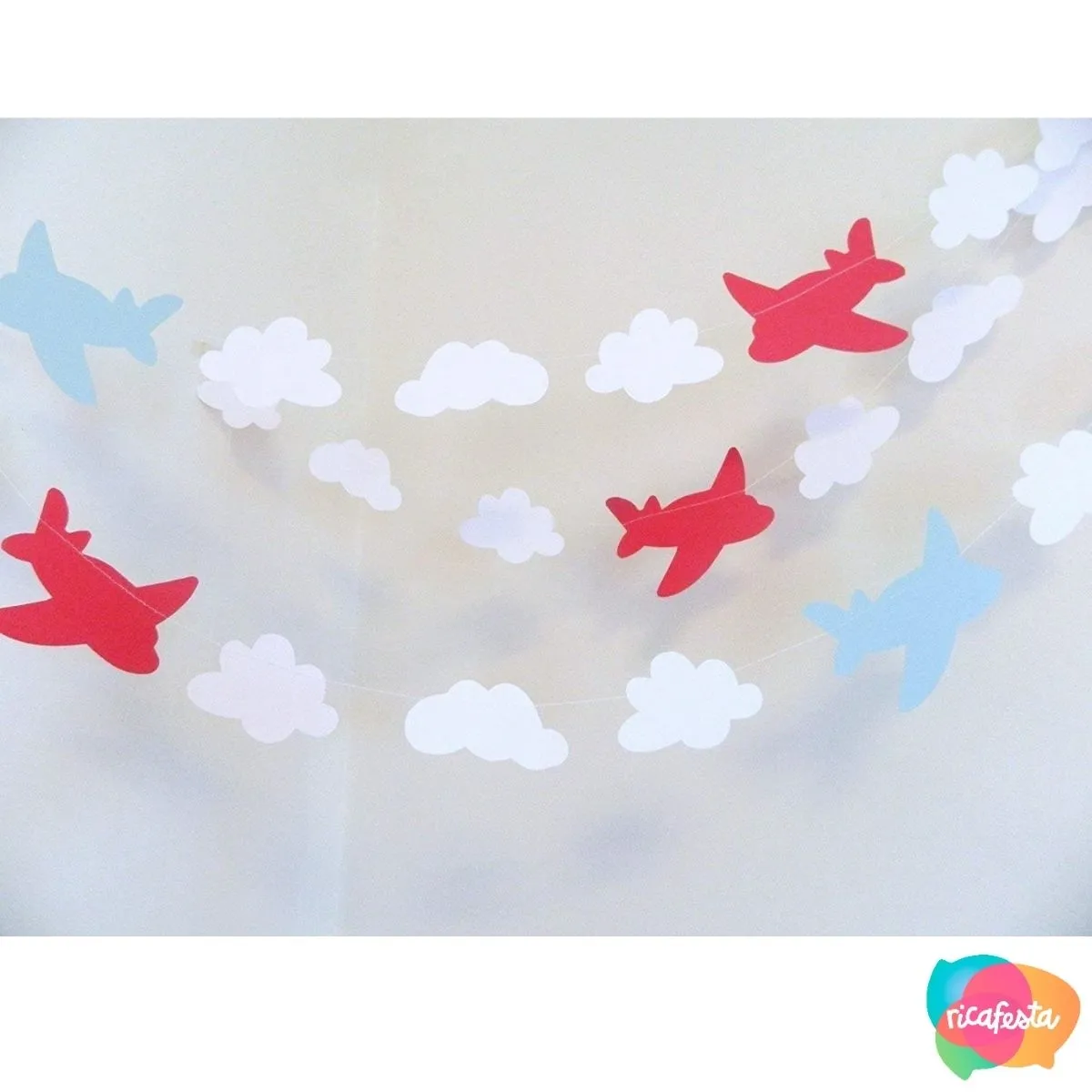 BANDEIROLA DE FELTRO AVIÕES AZUL CLARO