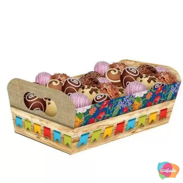 BANDEJA DE PAPEL BANDEIRINHAS FESTA JUNINA 11,5X16X6,7CM ÚNICO