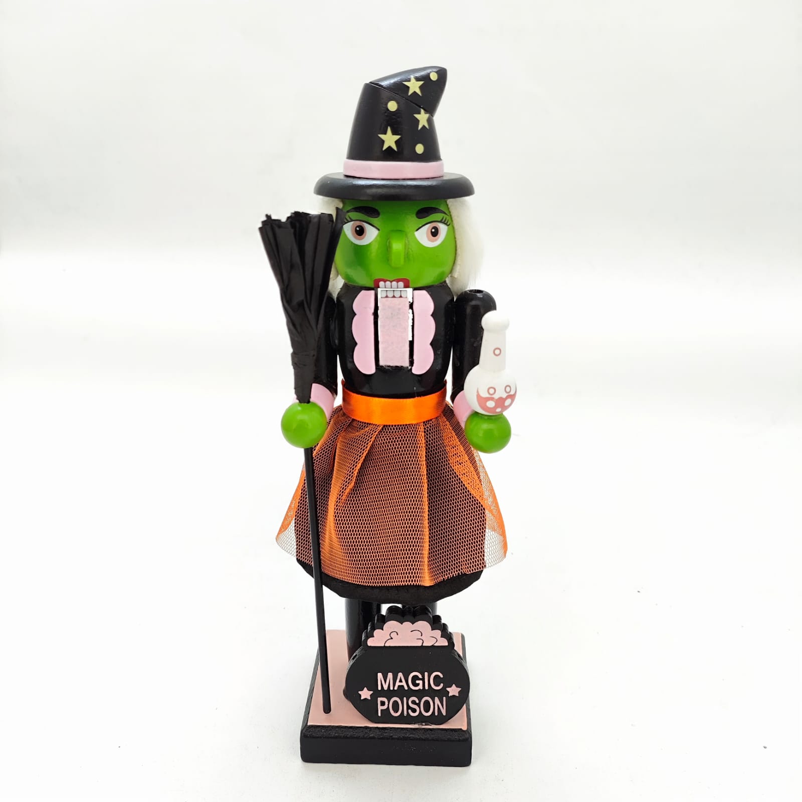 A clássica figura da bruxa ganha um novo visual com esta escultura em estilo quebra-nozes: corpo simétrico, traços marcantes e um toque de elegância sombria. Com 25cm de altura, esta Bruxa de Madeira é entalhada manualmente e pintada com riqueza de detalhes, trazendo à vida o misticismo das figuras tradicionais com uma estética única e colecionável.