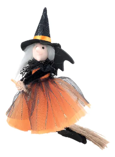 Traga charme e mistério para sua decoração de Halloween com a Bruxa Rebecca! Com 21 cm de altura, essa bruxinha encantadora veste um vestido laranja com tule preto, chapéu pontudo e segura sua tradicional vassoura. Feita com acabamento delicado, é ideal para decorar mesas, prateleiras ou pendurar em ambientes temáticos.