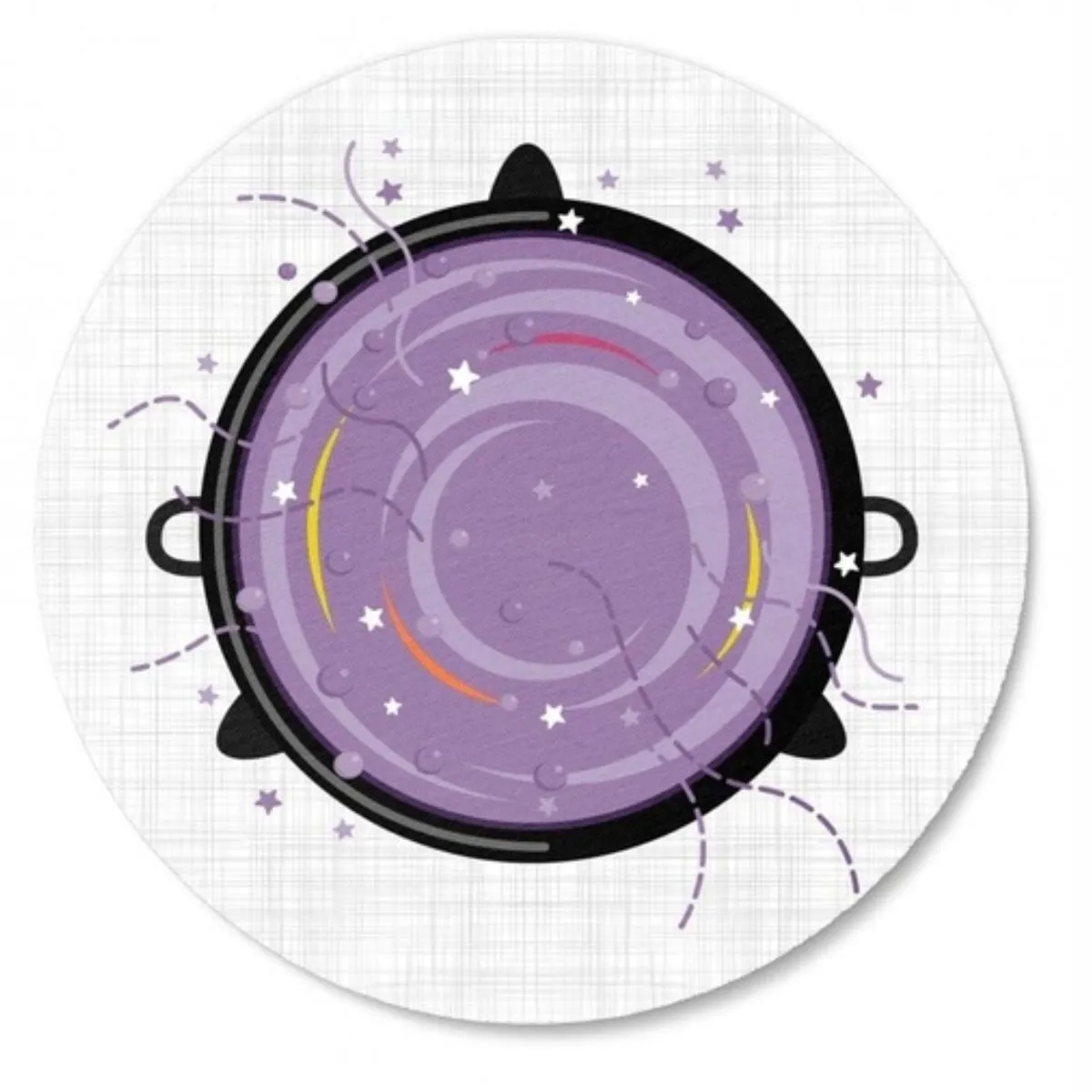 Transforme sua mesa em um cenário mágico para o Halloween com esta capa para sousplat temática! Com uma ilustração divertida de uma poção mágica borbulhante em tons de roxo, estrelas e detalhes encantadores, é perfeita para deixar sua decoração de festa ainda mais especial.