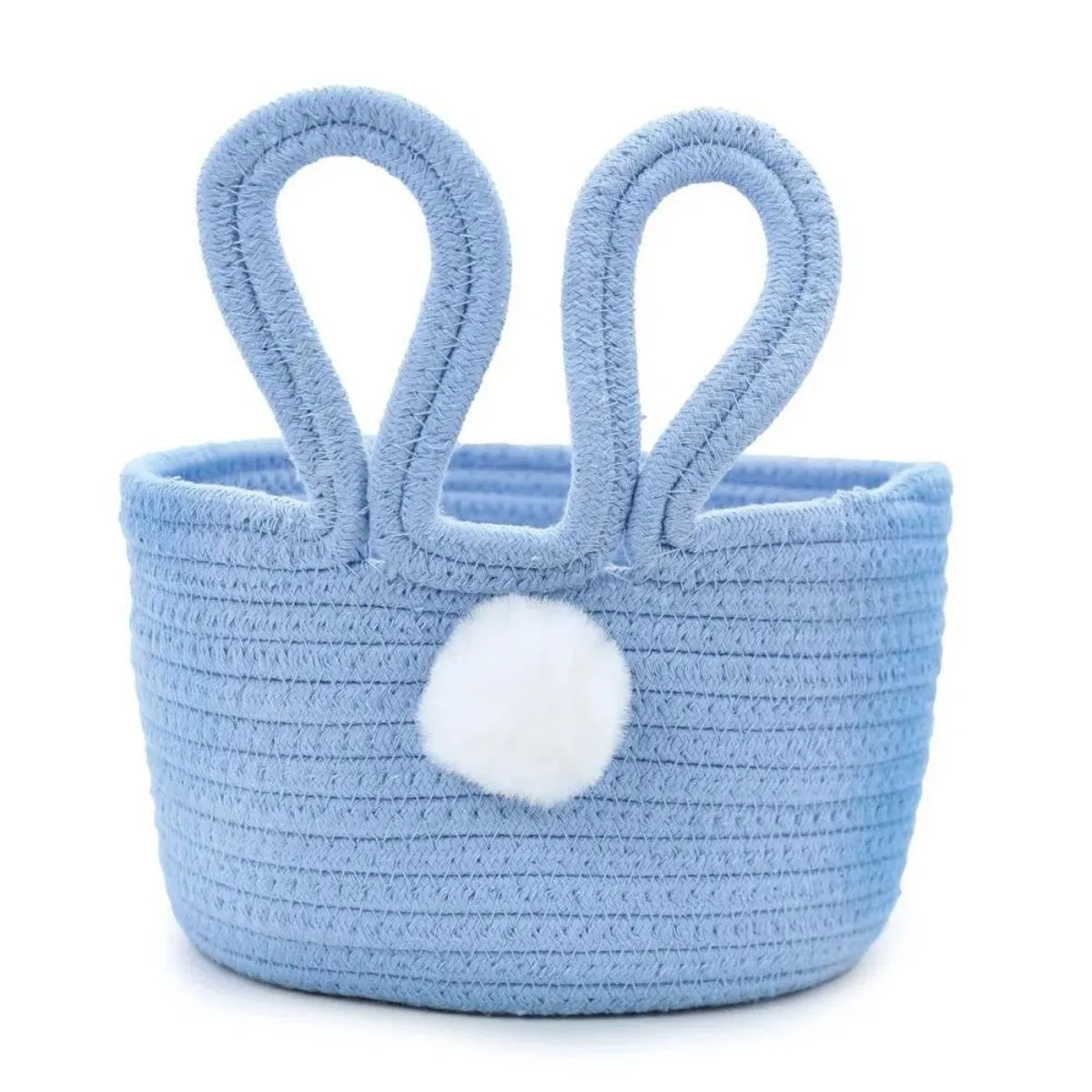 CESTO DECORATIVO ALGODÃO C/ORELHAS COELHO 16 CM AZUL