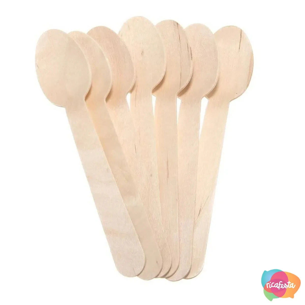 COLHER DE SOBREMESA MADEIRA NATURAL COM 10 UNID BRANCO