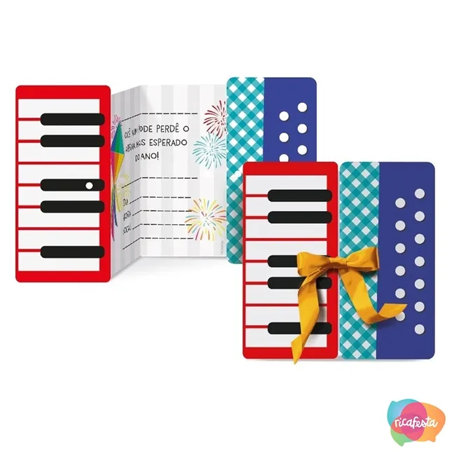 CONVITE ARRAIÁ SANFONA COM 8 UNID ÚNICO COLORIDO