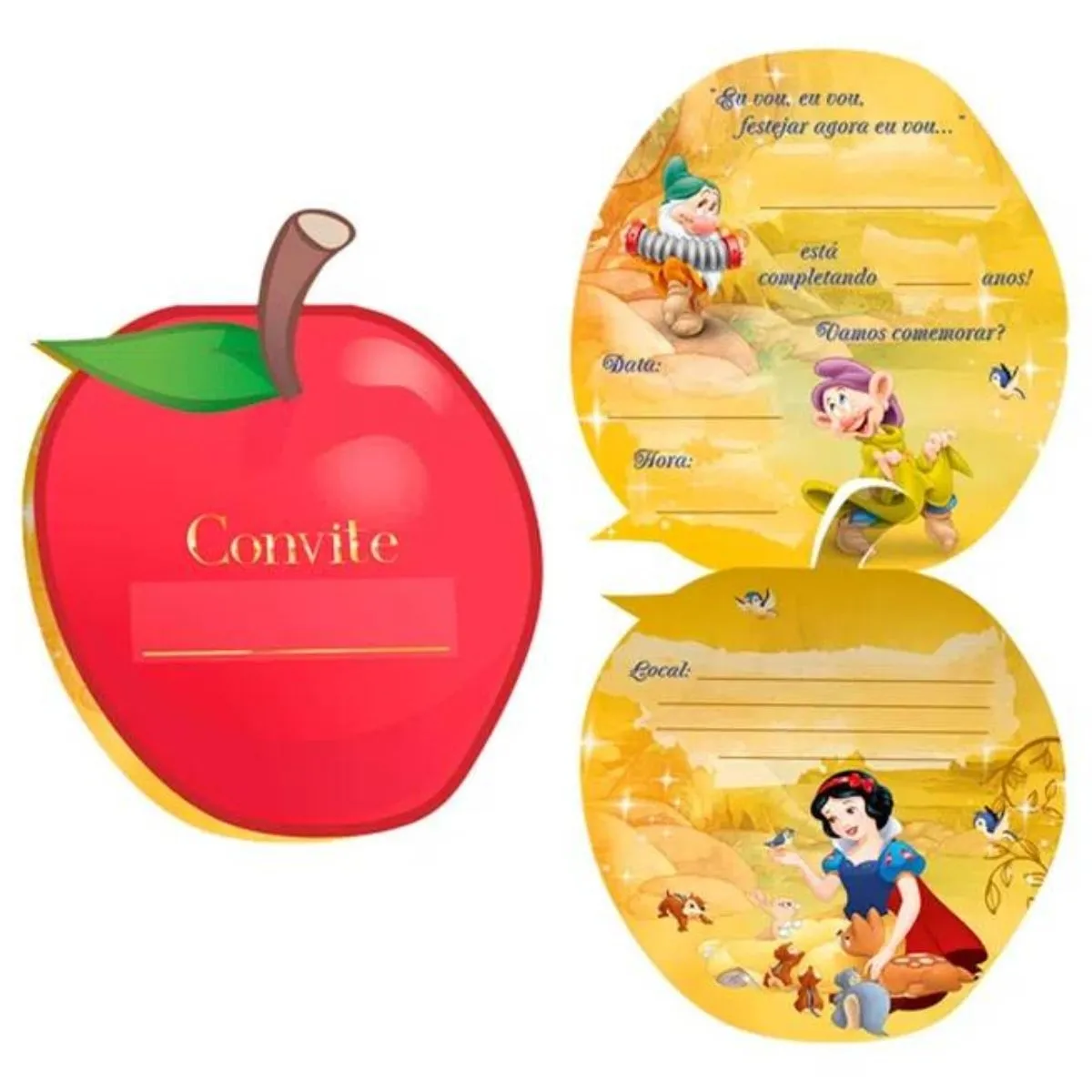 CONVITE BRANCA DE NEVE CLASSICA COM 8 UNID ÚNICO AMARELO