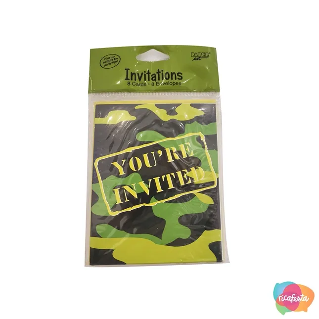 CONVITE CAMUFLAGEM COM 8 UNID 14 CM ESTAMPADO