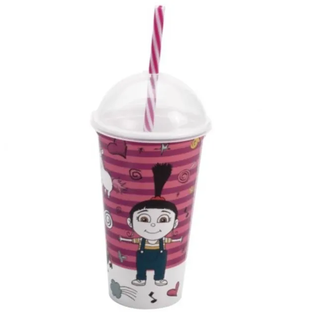 COPO PLÁSTICO MINION UNICORNS COM TAMPA E CANUDO 500 ML