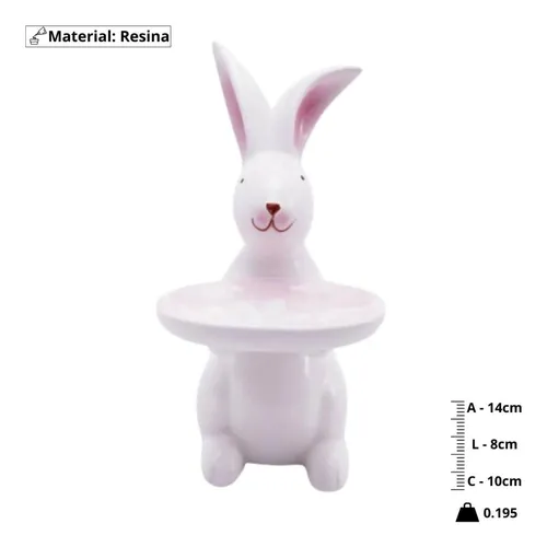 A Decoração de Páscoa Coelho Segurando Bandeja de Cerâmica é uma peça encantadora que une funcionalidade e charme para compor ambientes temáticos com elegância. Com acabamento detalhado e design delicado, o coelho segura uma bandeja que pode ser utilizada para apoiar doces, chocolates, pequenos ovos ou itens decorativos.