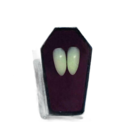 Feitos em material leve e confortável, os dentes são fáceis de usar e se encaixam sobre os caninos superiores, dando aquele toque clássico dos vampiros de filmes e histórias.