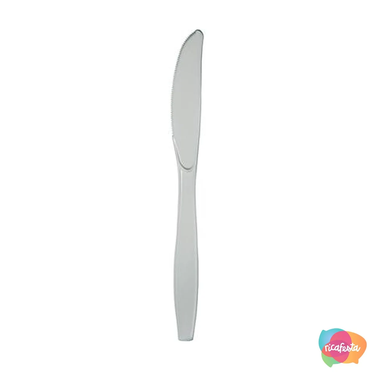 FACA DE PLÁSTICO PREMIUM COM 24 UNID ÚNICO PRATA / CINZA