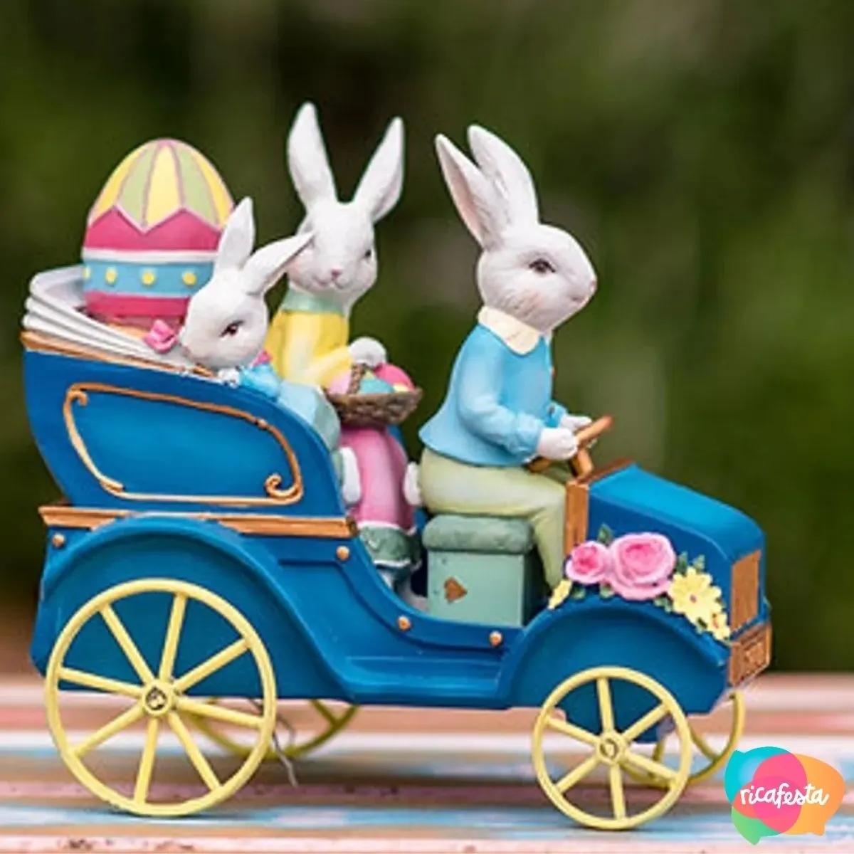 FAMILIA COELHOS PILOTOS DECORATIVO DE RESINA 13 CM COLORIDO