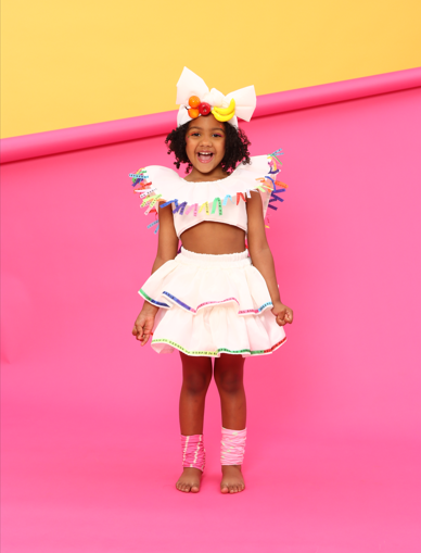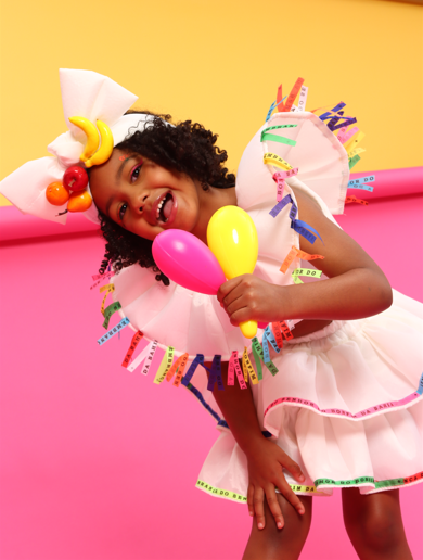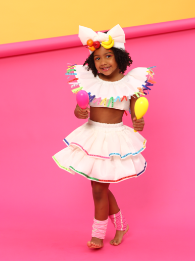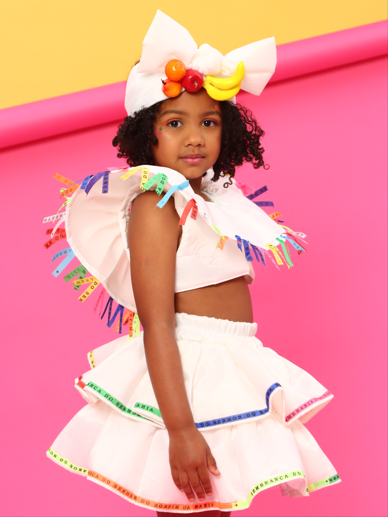 A Fantasia Infantil Baiana traz a riqueza da cultura brasileira em um traje alegre e colorido, perfeito para festas, apresentações culturais e Carnaval. Confeccionada em 100% poliéster, a fantasia oferece conforto, leveza e facilidade na manutenção, ideal para a rotina das crianças. Com saia rodada com acabamento em cores vibrantes, babados com fitas coloridas e um grande laço de cabeça decorativo, o conjunto reproduz com delicadeza e diversão o tradicional traje baiano, valorizando a identidade cultural de forma lúdica.