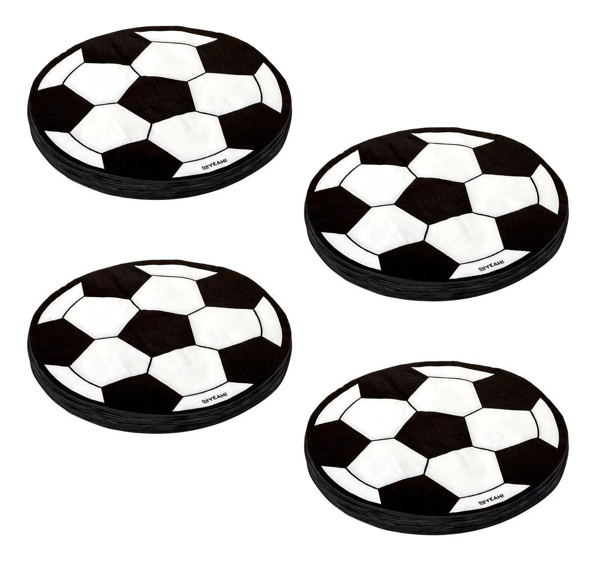 Com design que imita uma bola de futebol e acabamento em folha dupla, oferece maior absorção e resistência, garantindo praticidade durante toda a comemoração.