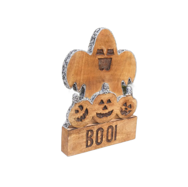 Decore seu ambiente com muito estilo e um toque rústico assustador! O enfeite de madeira “BOO!” é perfeito para quem quer celebrar o Halloween com charme e personalidade.