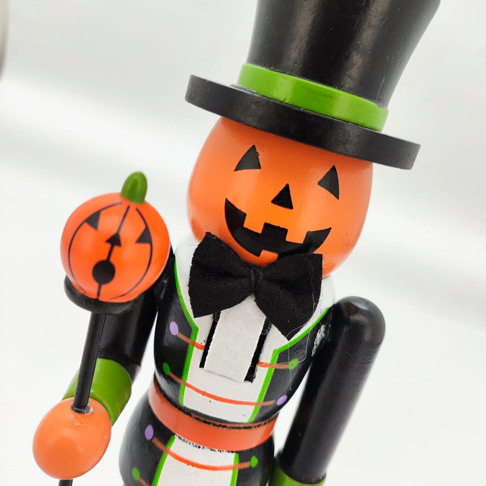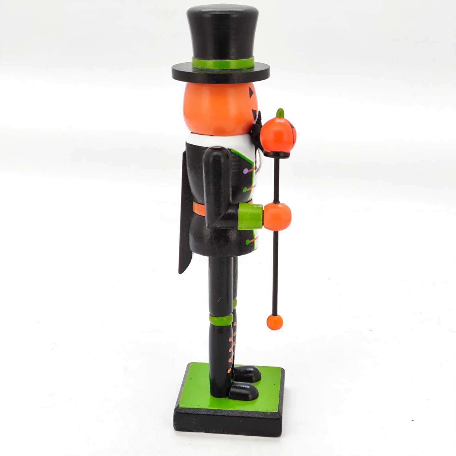 Inspirado no clássico design dos soldadinhos quebra-nozes, o Homem Abóbora de Madeira – 25cm traz uma releitura criativa e sombria da tradição natalina, agora com um toque de Halloween.