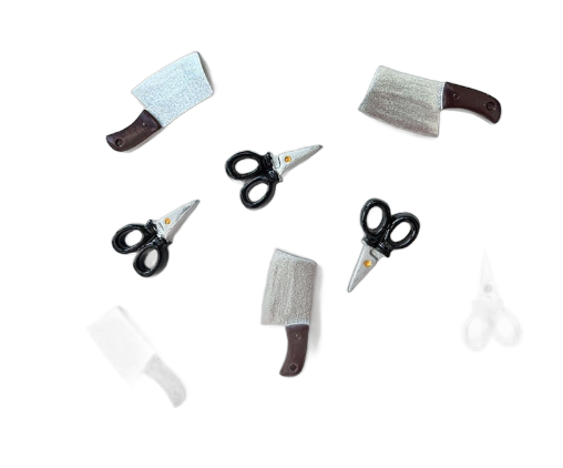 Adicione um toque assustador e divertido ao seu visual com os Mini BClips de Cabelo Halloween Sortido! Perfeitos para festas temáticas, fantasias ou eventos de Dia das Bruxas, esses acessórios criativos trazem miniaturas de faca, facão, tesoura e outros objetos sinistros para compor um penteado assustadoramente estiloso.