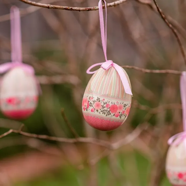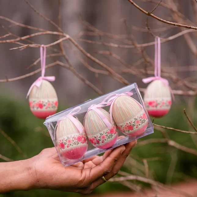 OVO DE PÁSCOA DECORATIVO FLOWERS COM 3 UNID ROSA CLARO