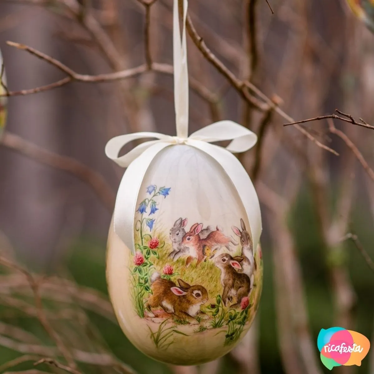 OVO DE PÁSCOA DECORATIVO RABBITS COM 3 UNID BEGE / PALHA