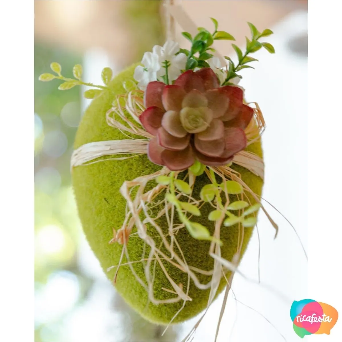 O Ovo Decorativo com Suculenta e Laço é uma peça delicada e sofisticada para compor a decoração de Páscoa com charme e elegância. Em tom verde claro, traz uma suculenta ornamental aplicada na parte superior e acabamento com laço decorativo, criando um visual moderno e harmonioso.