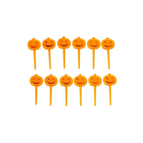 Picks para Petiscos Abóbora Halloween – 12 Unidades, 7 cm