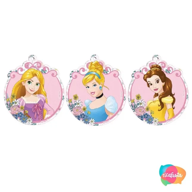 PINGENTES PRINCESAS DISNEY EM MDF COM 3 UNID 8 CM ROSA CLARO
