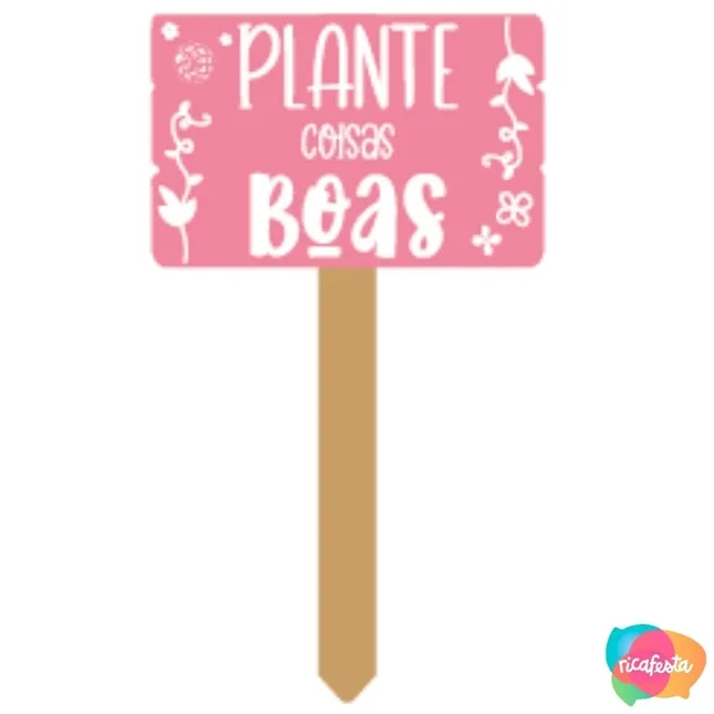 PLACA JARDIM PLANTE GOOD VIBES 30 CM ROSA BEBE