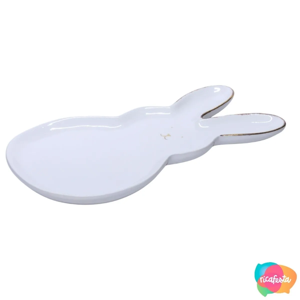 Prato Coelho de Porcelana 28 cm Branco – Decoração e Mesa Posta de Páscoa