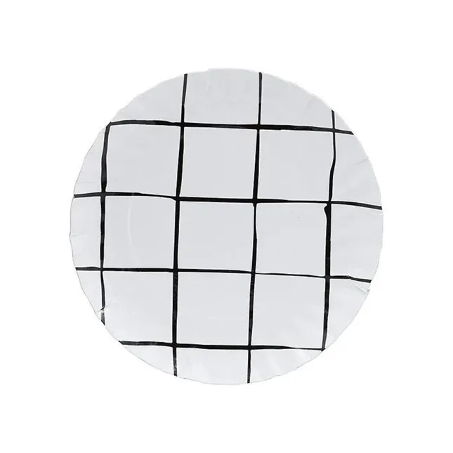 PRATO DE PAPEL FLORAL GRID PRETO/BRANCO 5 UN 14 CM