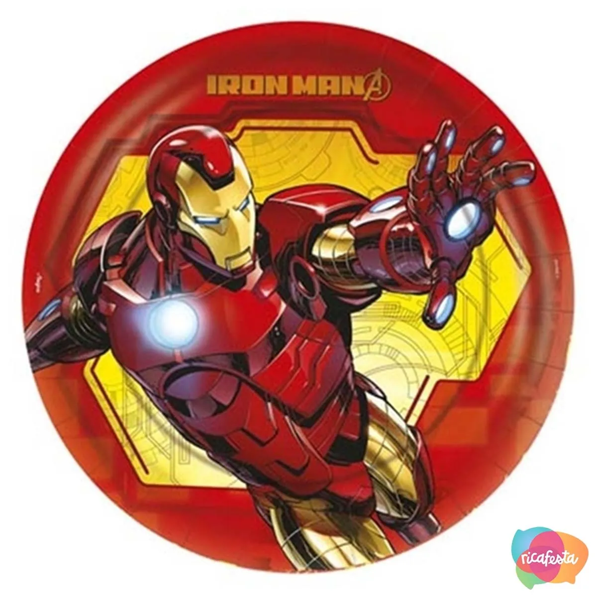 PRATO DE PAPEL HOMEM DE FERRO IRON MAN COM 8 UNID 18 CM
