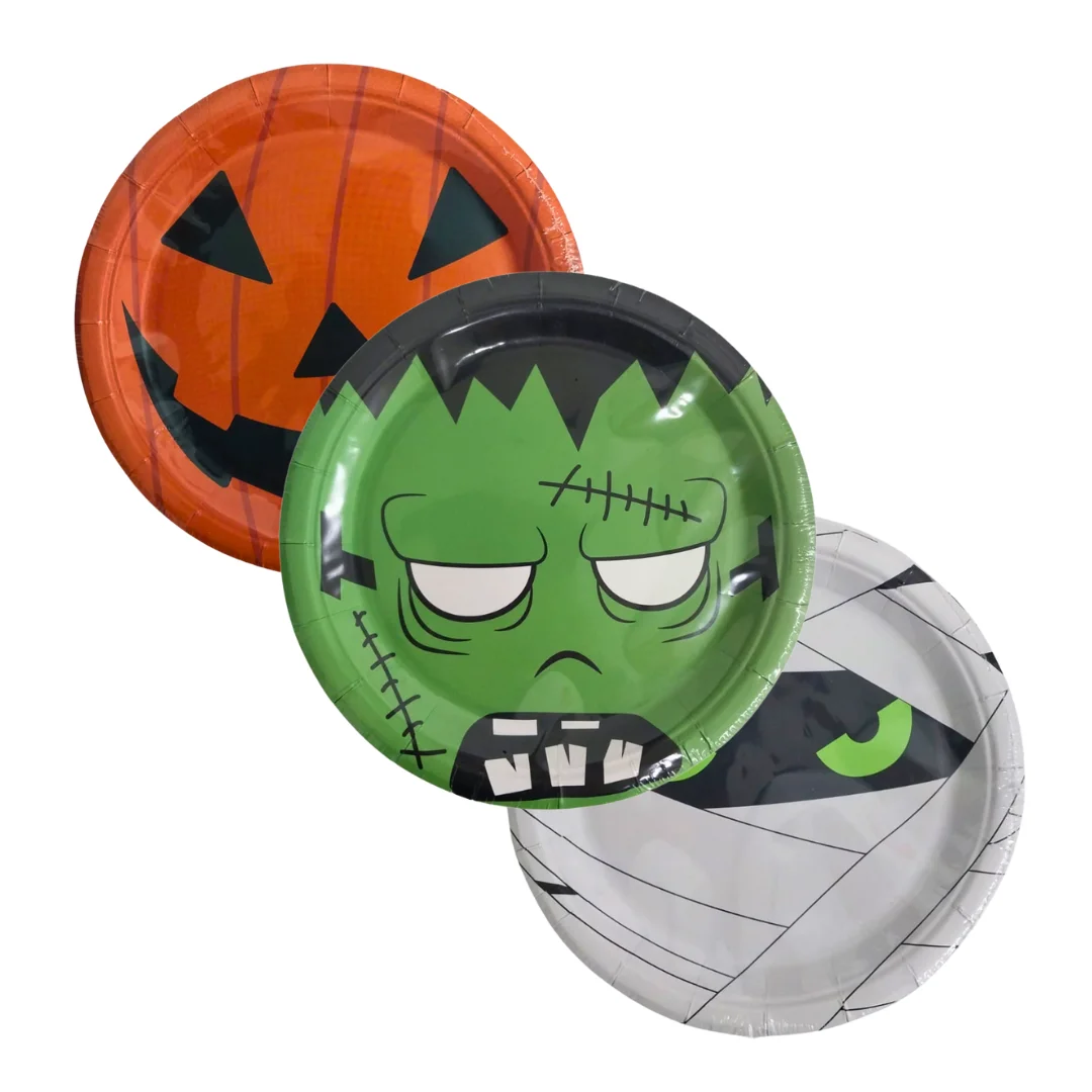 Deixe sua mesa ainda mais divertida (e assustadora!) com os Pratos de Papel Temáticos de Halloween! Com estampas exclusivas dos personagens Frank (Frankenstein), Múmia e Abóbora, esses pratos são ideais para servir doces, salgadinhos e lanches em festas temáticas.