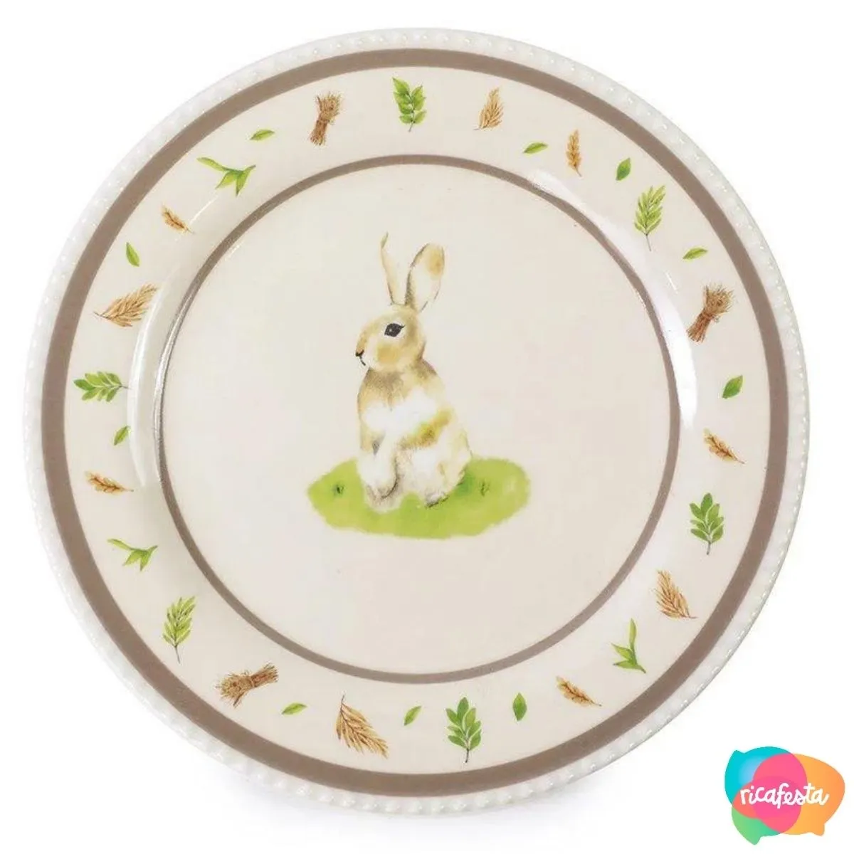 Prato de Sobremesa Coelhos da Páscoa em Cerâmica – Delicadeza e Encanto para Sua Mesa Posta