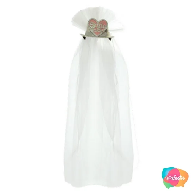 PRESILHA CHAPÉU COM VÉU BRIDE TO BE ÚNICO BRANCO