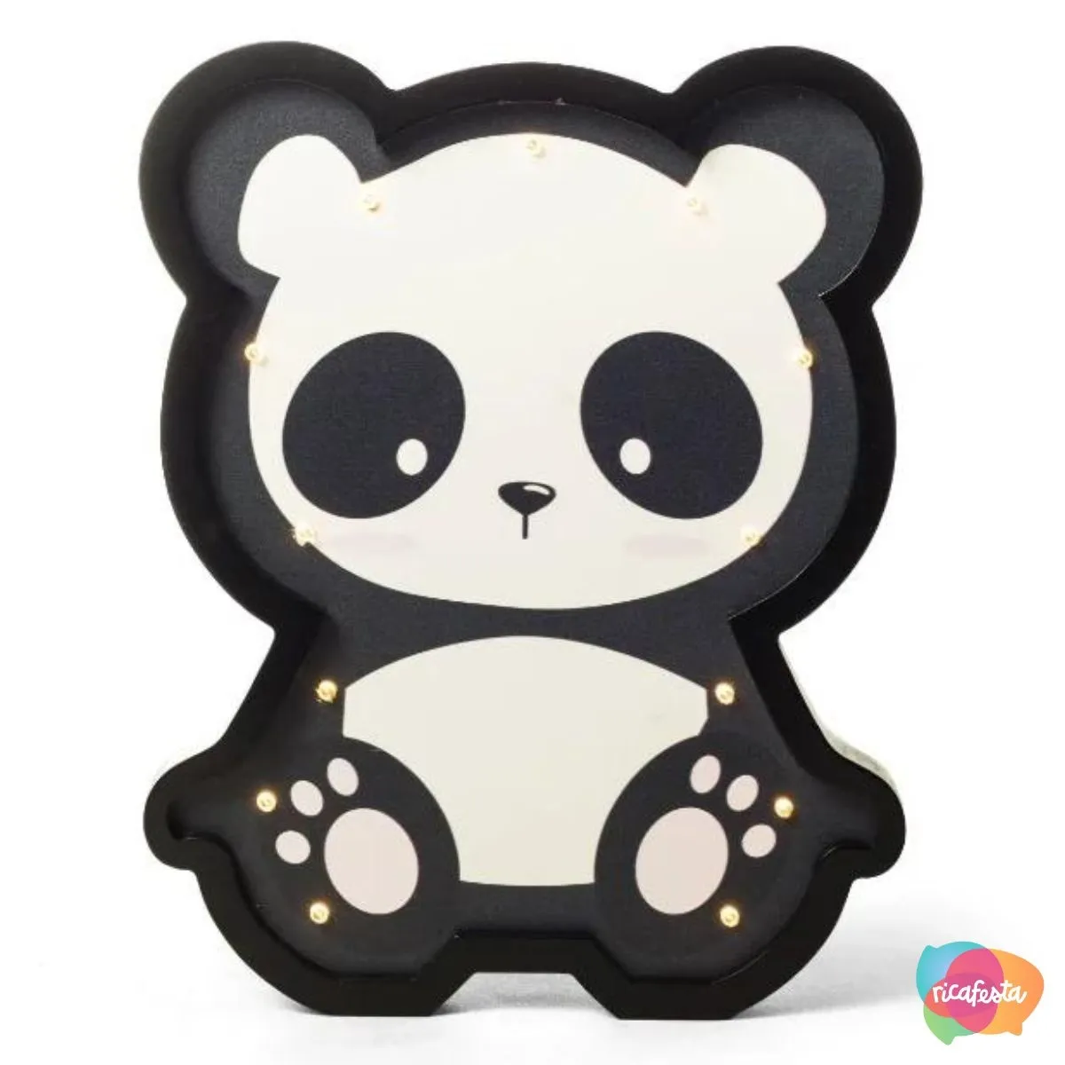 QUADRO DE MADEIRA PANDA COM LED 29 CM