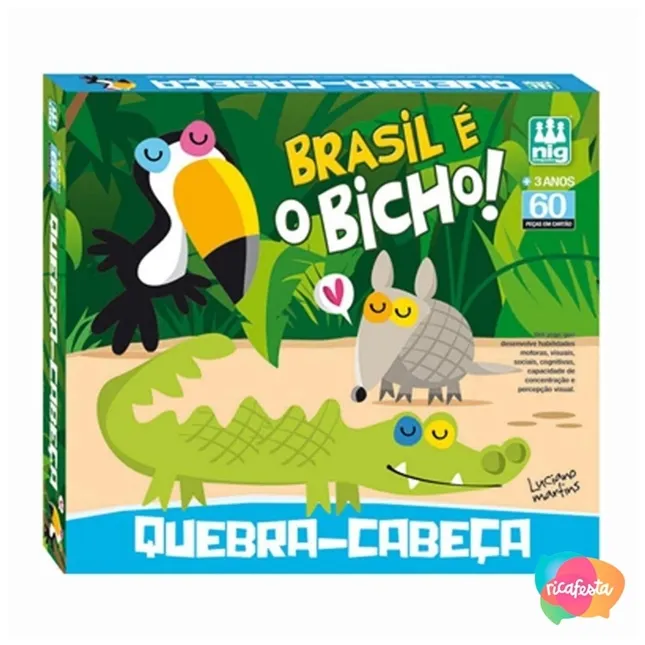QUEBRA CABEÇA BRASIL É O BICHO COM 60 PEÇAS ÚNICO COLORIDO