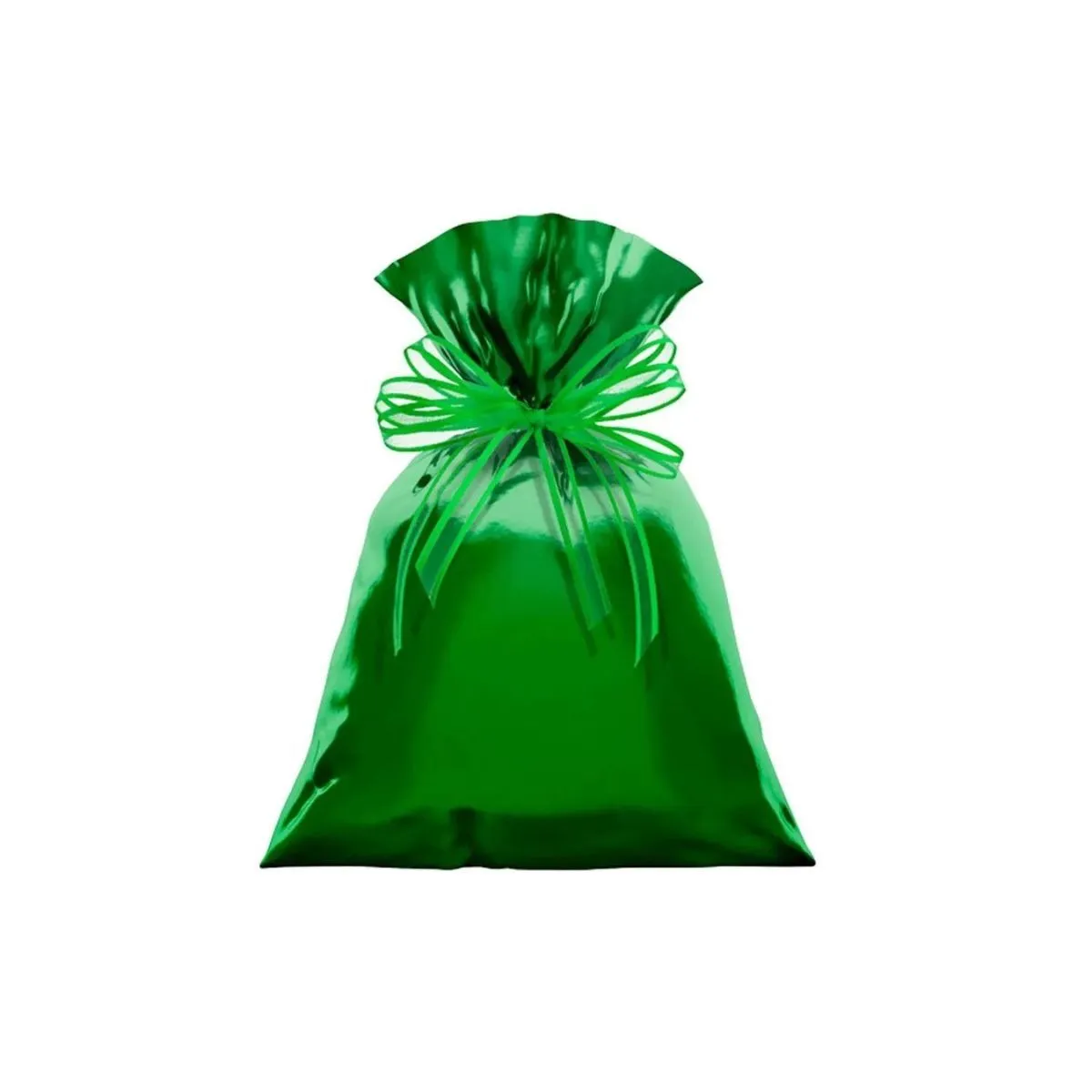 SACO PRESENTE METALIZADO 15X22CM 1 UN ÚNICO VERDE ESCURO