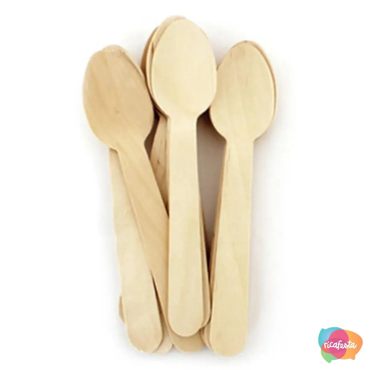 TALHER DE MADEIRA COLHER P/ SOBREMESA 10UN 12 CM MADEIRA
