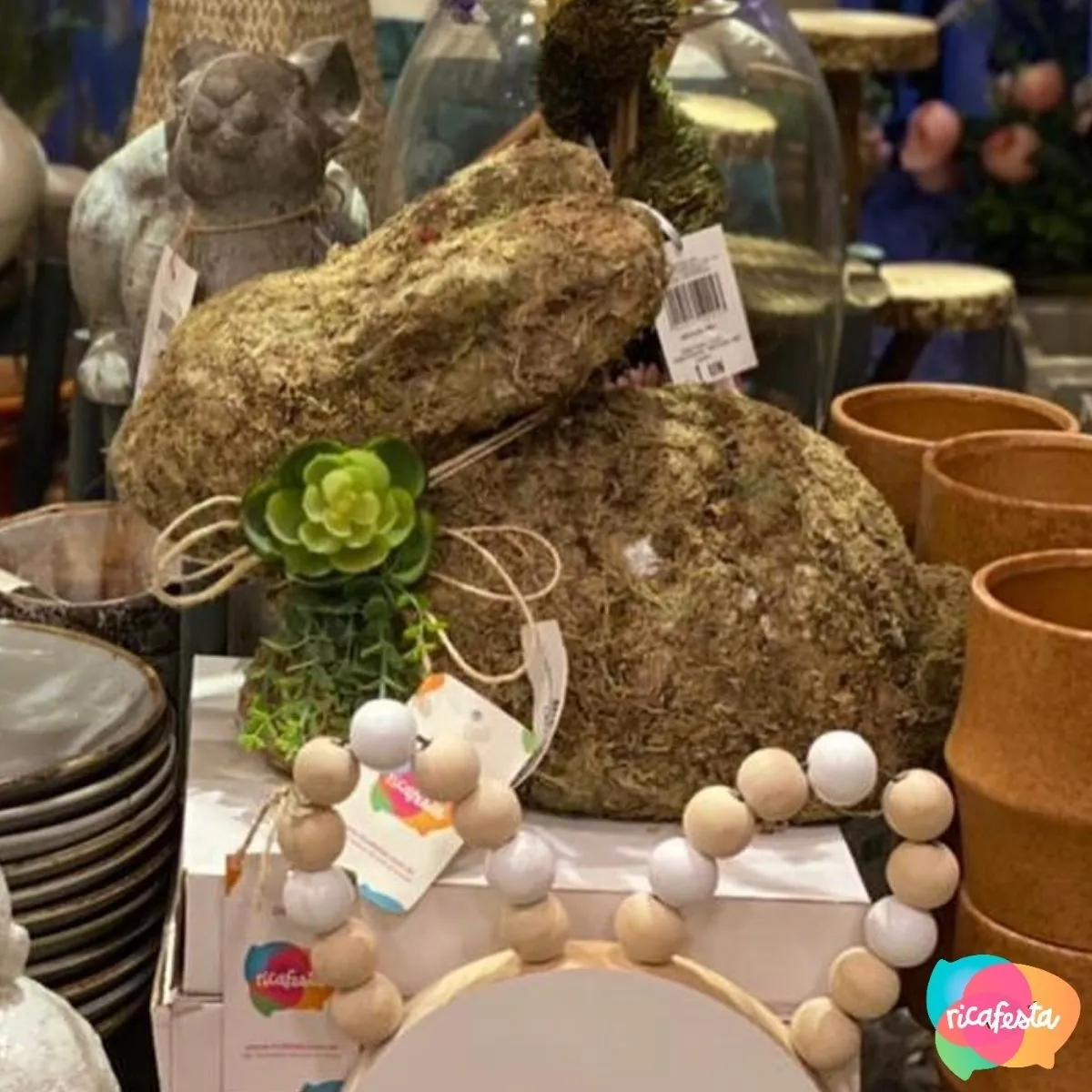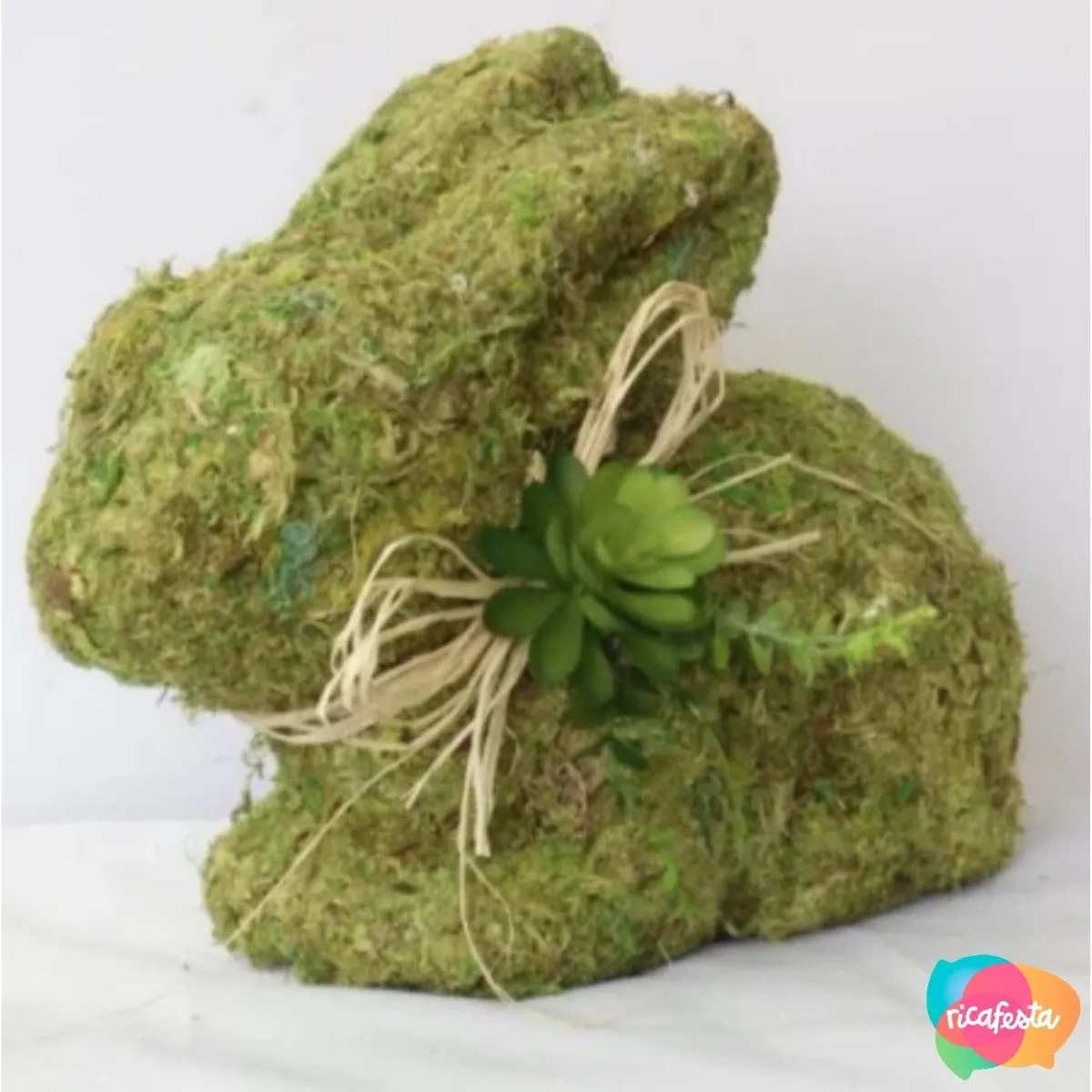 A Topiaria Coelho Sentado é uma peça sofisticada e marcante para compor a decoração de Páscoa com um toque natural e elegante. Revestida em musgo nas tonalidades verde e verde escuro, traz um visual inspirado em jardins e elementos orgânicos, ideal para ambientes internos.