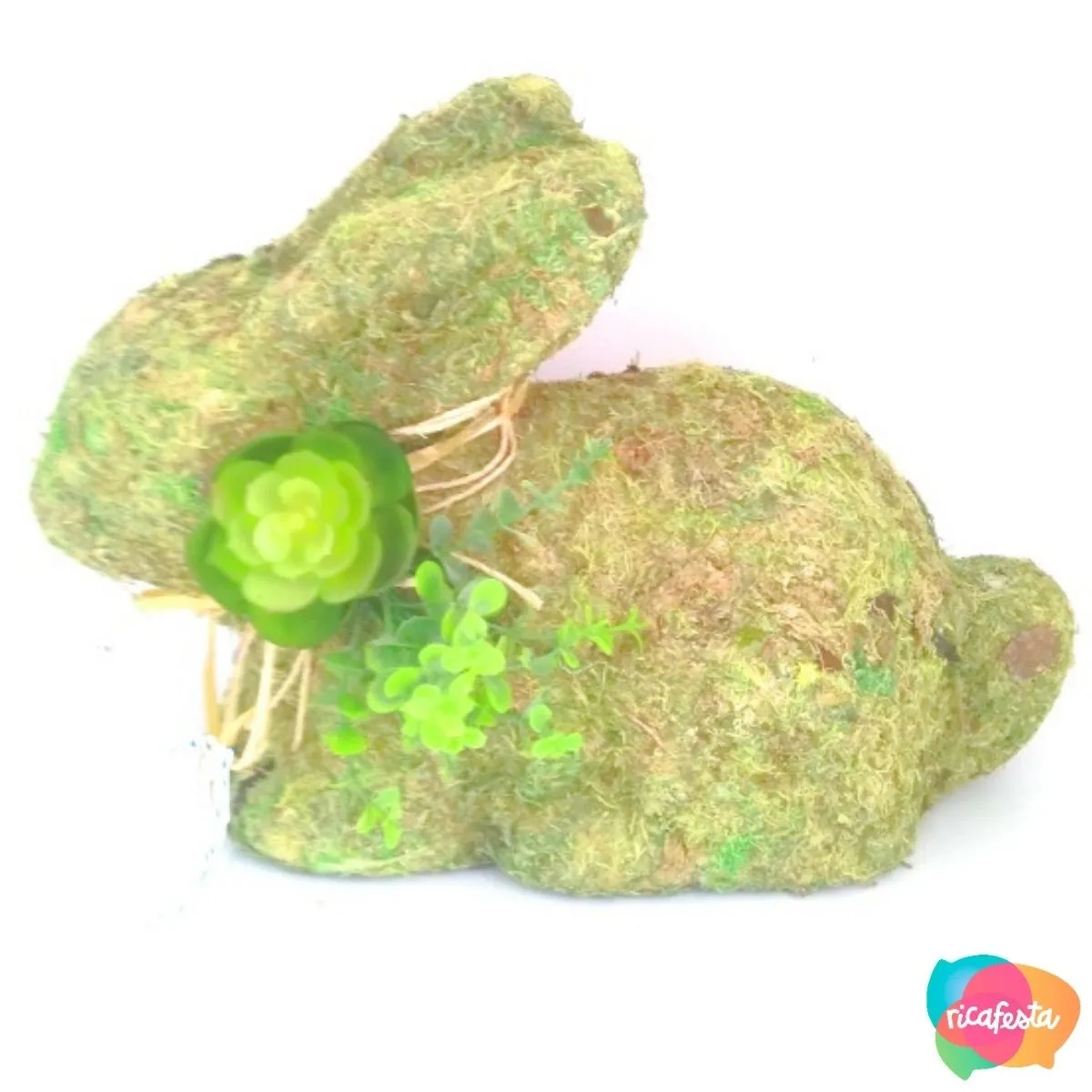 Topiaria Coelho Sentado 18x43cm Musgo Verde / Verde Escuro – Decoração de Páscoa
