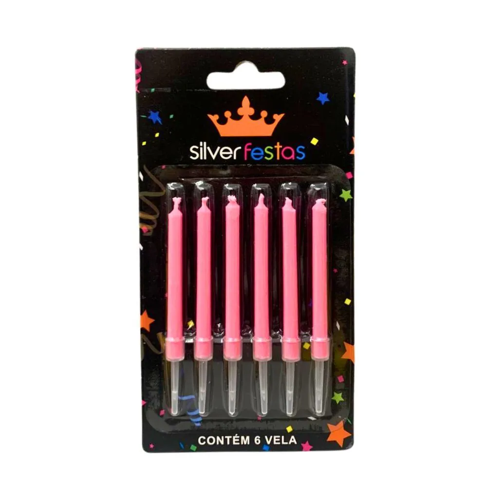 Vela Palito Rosa com 6 Unid