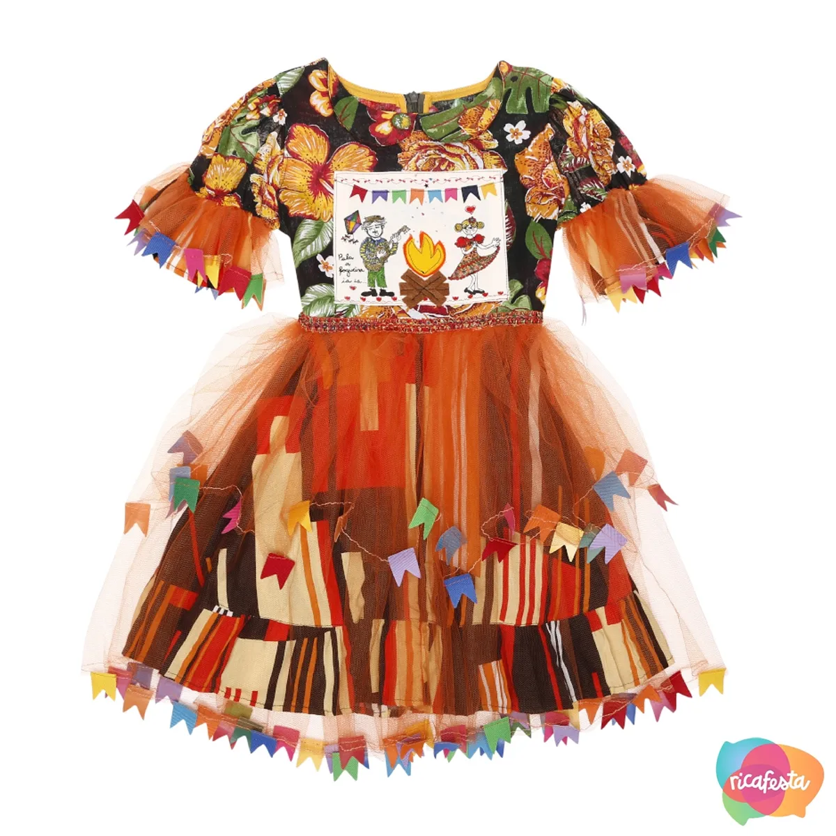 VESTIDO INFANTIL PULA FOGUEIRA COM TULE TAM 02 LARANJA